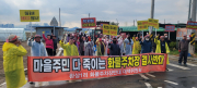 하양읍 환상1리에 화물주차장이 사업허가를 득하자 주민들이 공사장 입구를 막고 결사반대를 외치고 있다.