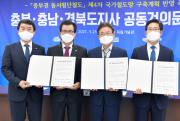 이철우 경북도지사는 5일 이시종 충북도지사, 양승조 충남도지사와 함께 천안 독립기념관에서 ‘중부권 동서횡단철도 국가계획 반영 촉구를 위한 경북·충북·충남도지사 공동 건의문’을 발표했다.
