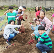 용성초등학교(교장 양화숙)는 27일 전교생과 유치원생이 참여한 가운데 미르뫼 작은 텃밭에서 고구마 캐기 체험활동을 실시했다.