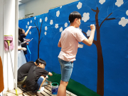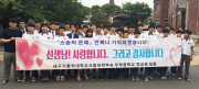경산중학교와 삼성현중학교 봉사동아리 학생 20여명이 우중충하던 청소년무료급식센터 출입구를 환하게 바꾸어 놓았다.